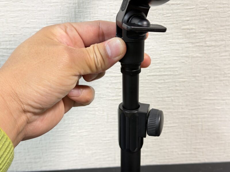 机で使う分には一番低い位置で良さそうですが、例えばソファ+ローテーブルなどで収録する際などに伸ばすんでしょうね。