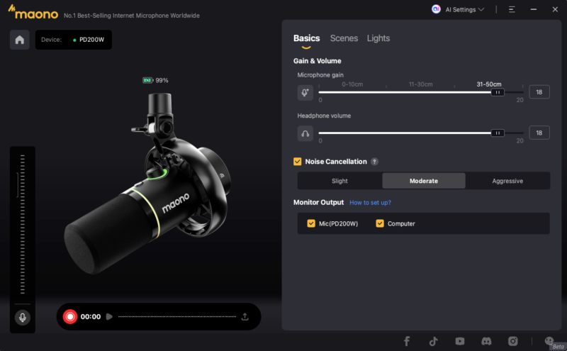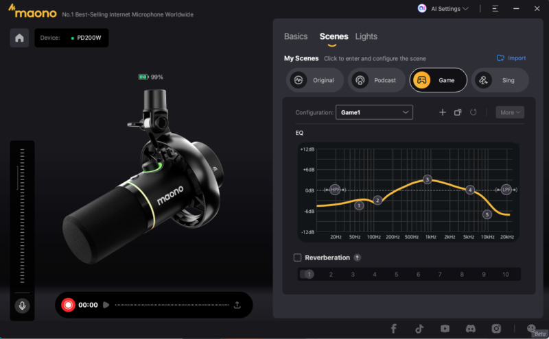 我が家にある6年間愛用していたMaonoのマイクと聞き比べてみましたが、ダイナミックマイクとコンデンサーマイクという違いがあるので、一概にはいえませんがダイナミックマイクである「Maono PD200W Hybrid」の方が周りの雑音を拾わない気がしますね。この辺り、マイクゲインやシーンをアプリを使ってより細かく調整することのできるという点でも「Maono PD200W Hybrid」が優ってくるでしょうね。