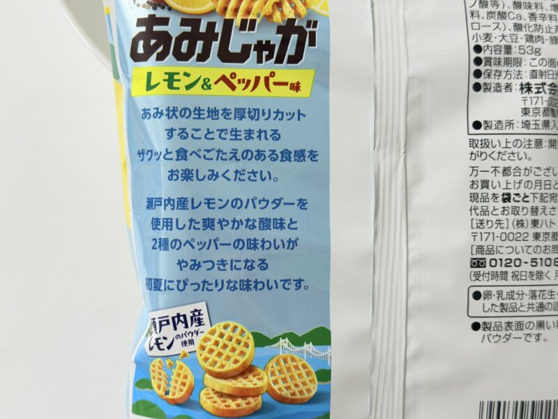 ということで紹介しました、あみじゃが レモン&ペッパー味。