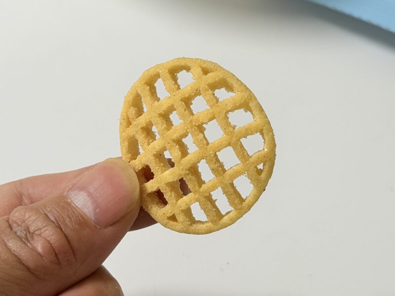 4~5mmくらいの厚さがある厚切りのポテトが網状にカットされている特徴的な見た目の「あみじゃが」。